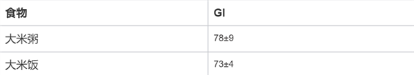 凭据悉尼大学发布的《外洋血糖指数和血糖负荷值表(2008 版)》,大米饭(白米)的 GI 值约为 73,属于高 GI 食物。而用相似的大米熬成的粥,其 GI 值更是高达 78。 有的履行室测定,米粥产生的 GI 值以致不错高达 87,权贵高于米饭[3]。
